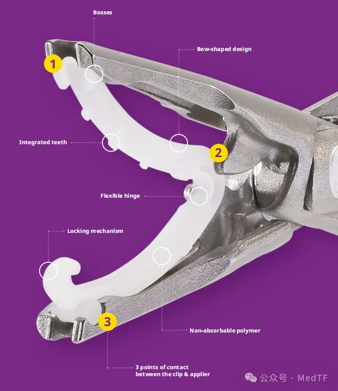 Three-Point Fixation Structure: The applier utilizes a three-point contact design, ensuring the Hem-o-lok PurplePlus remains stable during loading and locking, effectively reducing the risk of clip dislodgement.